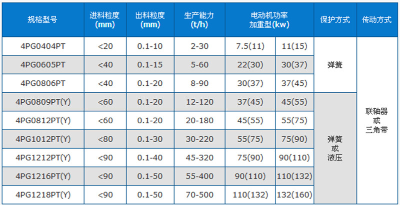 四輥破碎機(jī)配置四個(gè)碾輥,根據(jù)用戶需要的破碎粒度,分為兩種機(jī)型: