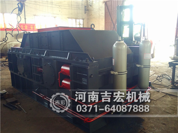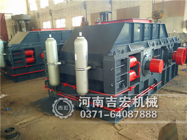 石灰石破碎設(shè)備主要由輥輪、輥輪支撐軸承、壓緊和調(diào)節(jié)裝置以及驅(qū)動(dòng)裝置等部分組成。工作時(shí),將破碎物料經(jīng)給料口落入兩輥?zhàn)又g,進(jìn)行擠壓破碎,成品物料自然落下。遇有過(guò)硬或不可破碎物時(shí),其輥?zhàn)涌蓱{液壓缸或彈簧的作用自動(dòng)退讓,使輥?zhàn)娱g隙增大,過(guò)硬或不可破碎物落下,從而保護(hù)機(jī)器不受損壞。相向轉(zhuǎn)動(dòng)的兩輥?zhàn)佑幸欢ǖ拈g隙,改變間隙,即可控制產(chǎn)品排料粒度。