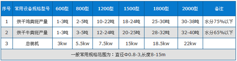 牛糞烘干機技術參數(shù)